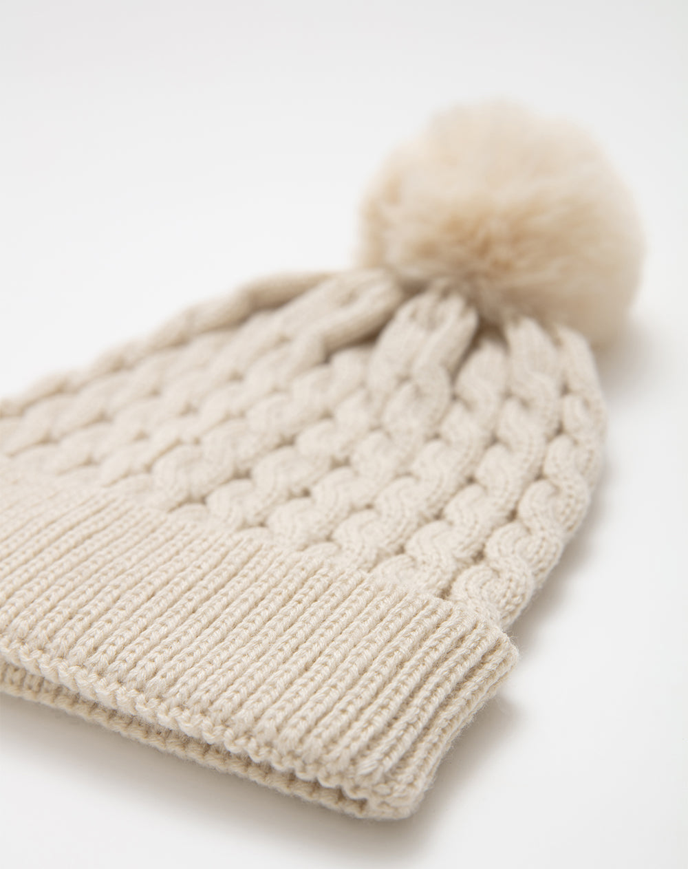 • Gorro monocolor tejido acabado vuelta detalle pompón en la parte superior