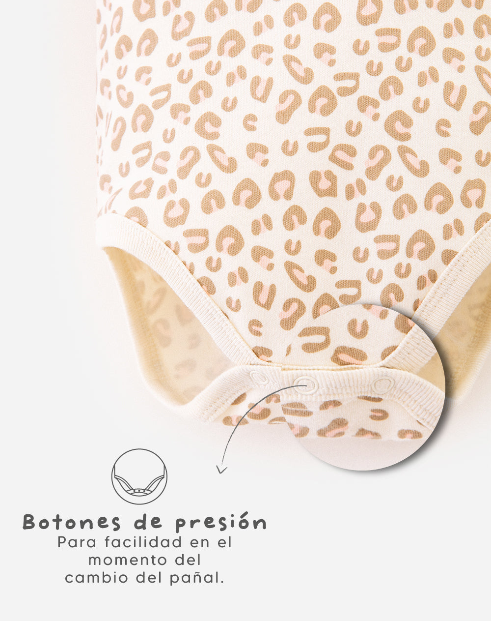 • Botone s de presión en entrepierna para mayor facilidad al vestir