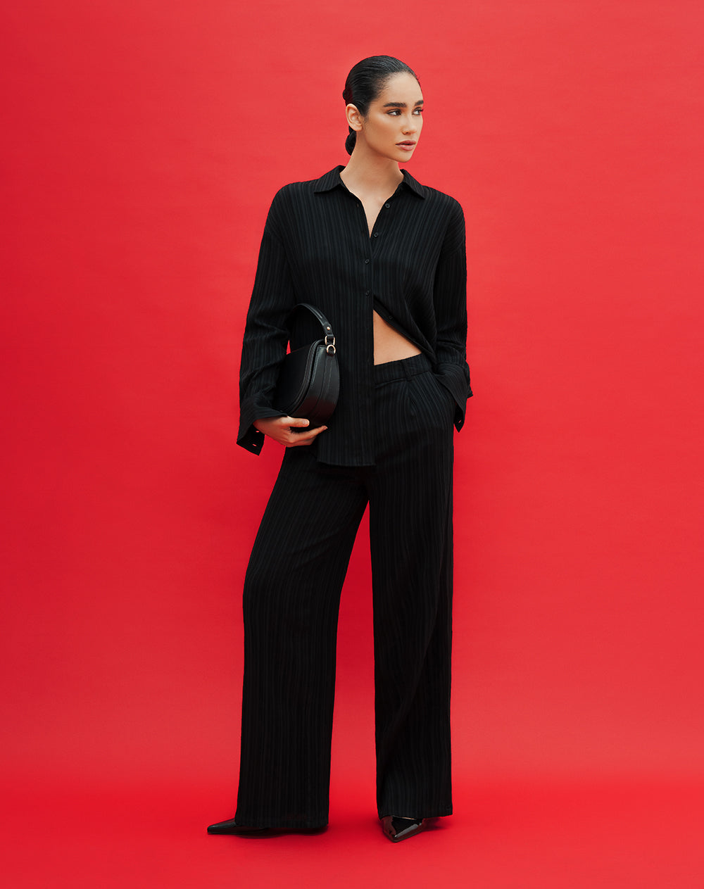 • Tejido plano con Elastano (Semi elástico) Wide leg (Bota ancha)