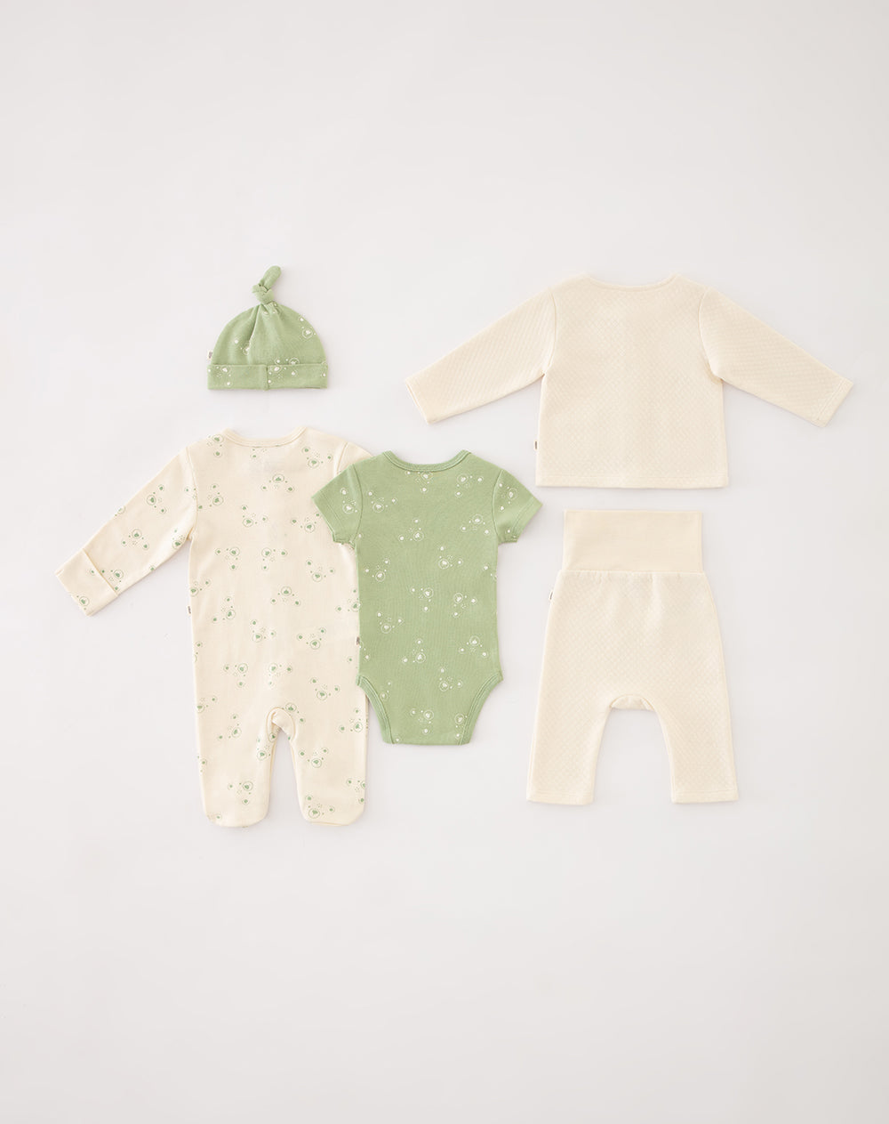 • Set para bebe niño con 5 piezas buzo pijama manga larga con pies body manga corta pantalón largo y gorro