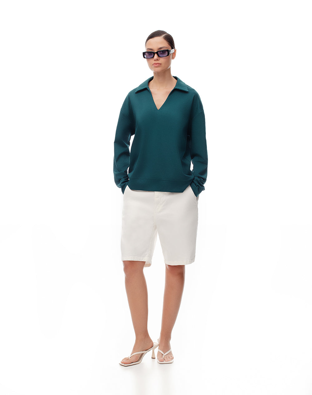 • Buzo cuello polo y escote en V