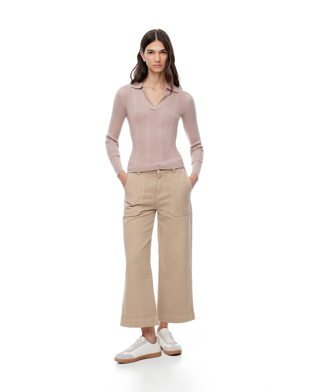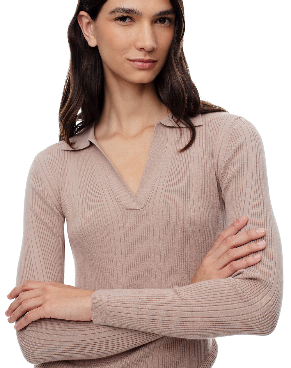 • Camisa tejida tipo polo manga larga
